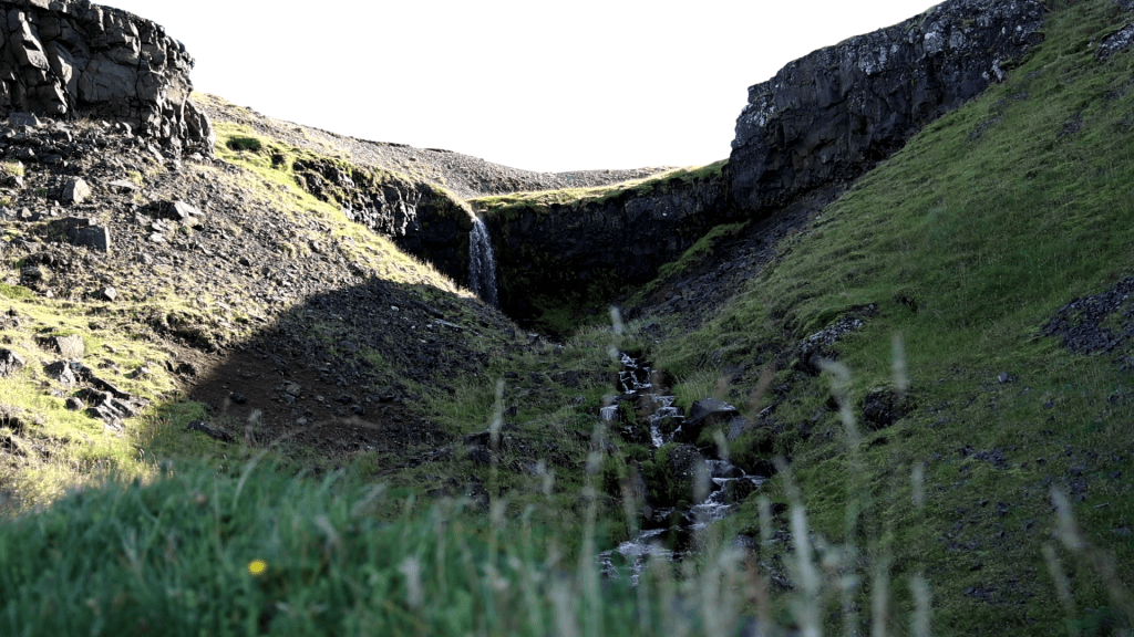 Der Wasserfall hat offiziell wohl keinen Namen. Laut Maps heißt der Fluss wohl Middelalsá. Ich würde den kleinen Wasserfall daher mal typisch isländisch Middelalsáfoss nennen. Es könnte glatt meine Berufung werden, dass ich Orte in Island benenne. Ich werde darüber nachdenken.