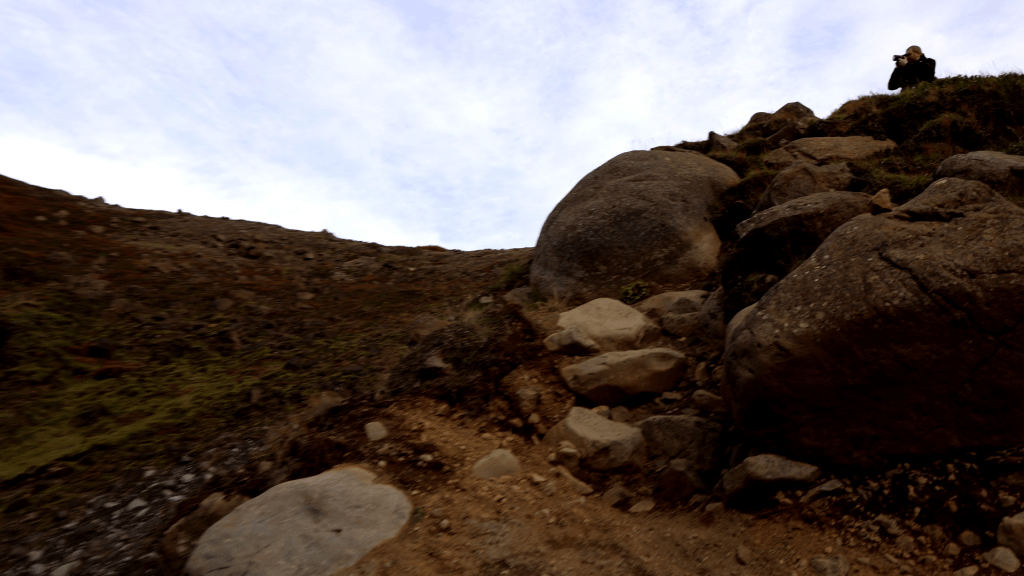 Und so ging ich auf einmal einen Berg hoch. Meine Frau stand noch immer auf der Plattform und machte Fotos und ich fragte mich nach 50m dann doch, wo genau ich jetzt eigentlich hin will. Mein Blick nach oben fand zwar noch weitere Abschnitte des Wanderweges, allerdings waren diese teils von Geröll übersäht oder steil oder matschig oder alles davon. Ich beschloss daher einfach meine erhöhte Position zu nutzen und Fotos zu machen.