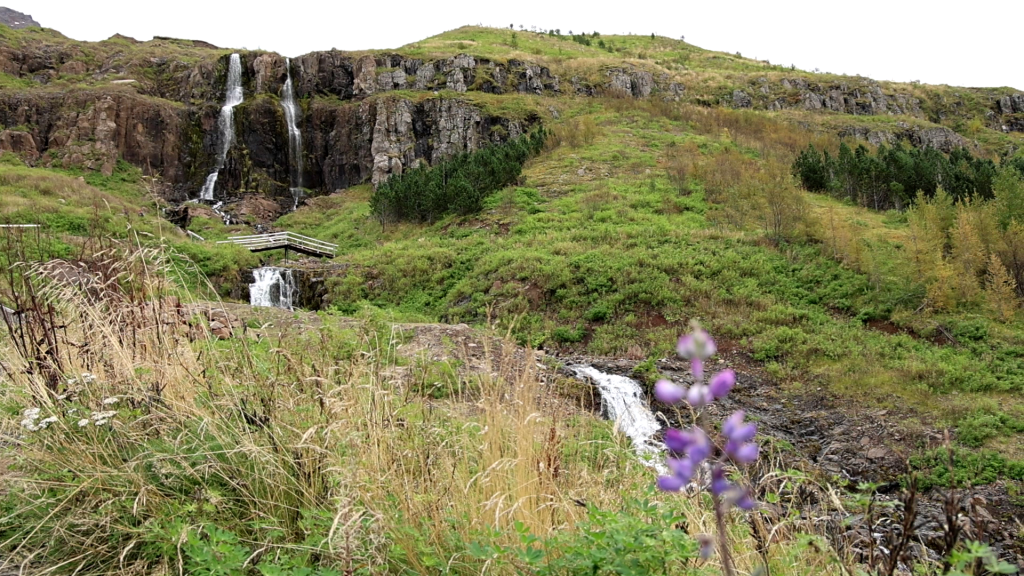 Der Búðareyrarfoss ist eigentlich recht charmant. Man hat hier mittlerweile einen voll-ausgebauten Pfad, der einen entlang des Wassers bis nach oben zum Wasserfall führt. Hinter einem liegt das spiegelglatte Wasser und dann das bildschöne Fischerdorf Seyðisfjörður. Der Wasserfall selbst ist auch durchaus hübsch.