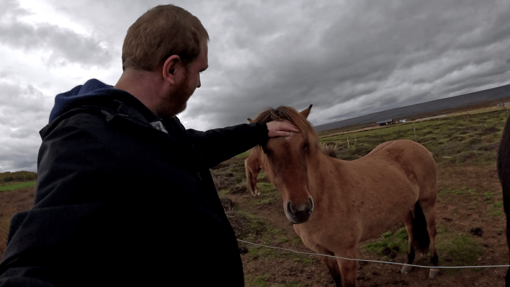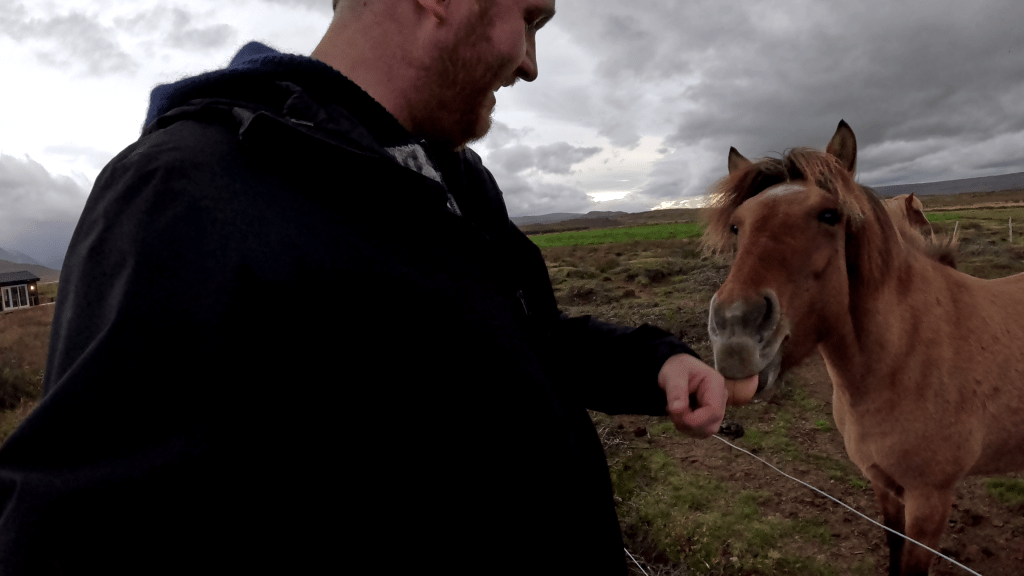 Letztlich ist das Wetter aber eben Wetter und so sehr das ganze auch stresst, habe ich den Gedanken gefunden, dass ich mich heute noch nicht zu sehr da reinsteigere (das kommt morgen eh von ganz allein). Stattdessen folgte ich einem Impuls und schrieb unserem Gastgeber eine kurze Nachricht, in der sinngemäß stand „Da stehen Pferde am Zaun, darf ich da mal hin?“ und er bejahte direkt.