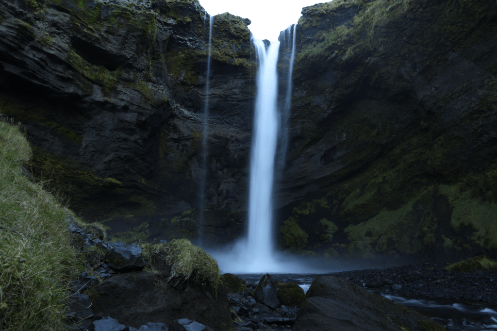 Der Gljúfrabúi hat dabei die Besonderheit, dass er in eine Höhle fällt. Den Eingang in diese Höhle füllt ein kleiner Fluss. Das heißt, wenn man zum Wasserfall will, muss man wohl oder übel durchs Wasser. Es ist nicht tief, aber es hat eben auch etwas von Abenteuer, wenn man über Steine springt um irgendwie näher an stürzendes Wasser zu kommen.