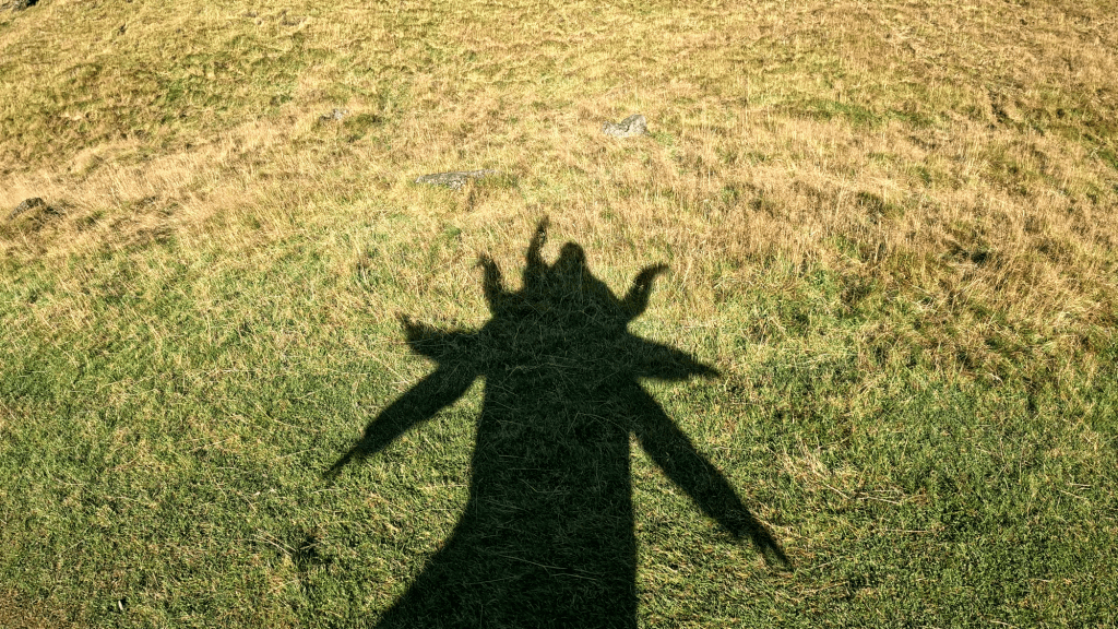 Und wenn wir schon bei Vorteilen sind. Da die Sonne recht günstig stand, haben wir dann auch gleich mal zu viert geschaut, wie so eine Schattenfigur funktionieren könnte. Ich muss leider sagen, dass das den Bereich „unfassbar cool“ verlässt und in den Bereich „ungewollt humoristisch“ umsiedelt.