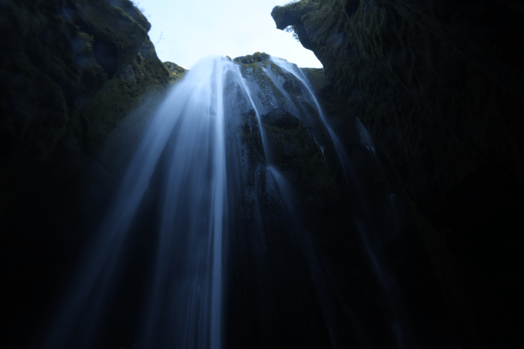 Der eigentliche Star dieses Stopps war dann aber der eher unbekannte Wasserfall nebenan. Mit dem wunderschönen Namen Gljúfrabúi liegt er kaum 500m neben dem Seljalandsfoss aber ich glaube, viele Menschen kennen den Wasserfall gar nicht oder wissen erst von seiner Existenz, wenn sie versehentlich nicht zum Parkplatz laufen sondern den Weg in die andere Richtung entlang schlendern.