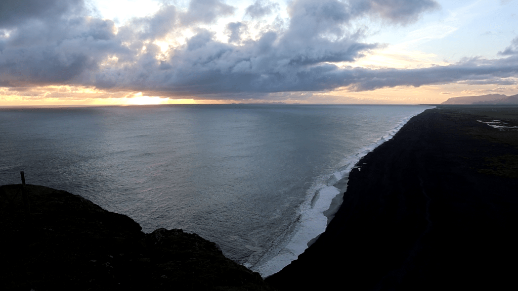 Wir hatten eigentlich darauf gehofft, dass die Sonne zwischen Wolken und Meer untergeht. Leider hatten die Wolken dafür etwas zu viel Geltungsdrang. Der Ausblick auf das weite Meer und den scheinbar unendlichen schwarzen Strand waren aber trotzdem ein wunderbarer Ausklang für den Tag.