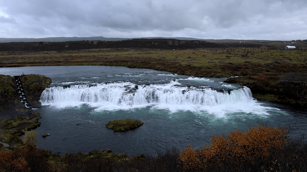 Da wir am Golden Circle von Island sind, wartet quasi hinter jedem Stein ein neues Highlight. Und da das Wetter sich nun entschied recht stabil „Gut genug um rauszugehen“ zu bleiben, hüpften wir ins Auto und düsten ab zum ersten Wasserfall: Der FixiFoxi, oder richtig „Faxifoss“. Hier waren wir nur kurz und haben ein paar Fotos in die Kamera geknippst. Die Wolken hingen recht tief und selbst der Typ, der sich beim Angeln einen fetten Fisch gefangen hatte, schien so langsam zusammenzupacken.